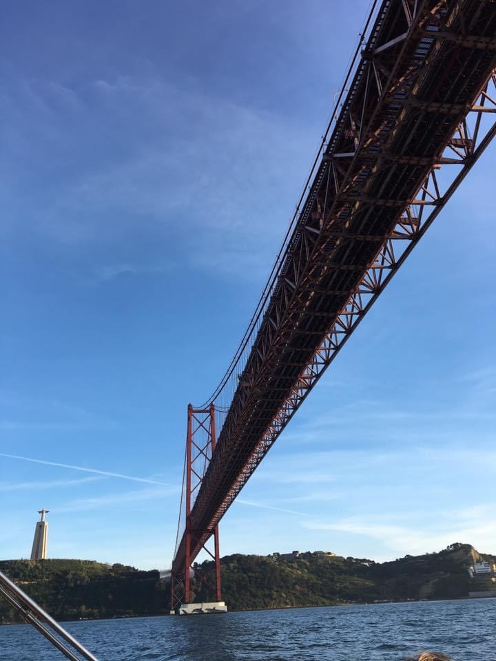 We passed the Ponte 25 de Abril (25th of April Bridge), which is a suspension bridge connecting Lisbon to Almada. The bridge is similar to the San Francisco Golden Gate Bridge because it’s built by the same company that designed the San Francisco-Oakland Bay Bridge. If you look closely, you can see the Christ Redeemer look-alike statue on the hilltop.
