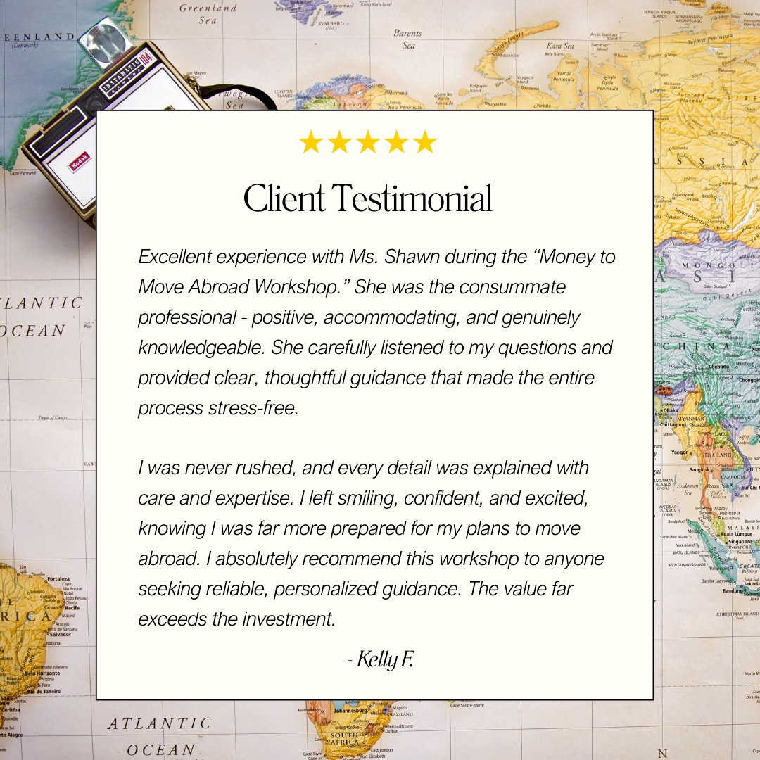 After spending 30 years in Washington, DC, I sold everything, quit my job, and started traveling the world full-time. I’ve spent the last three (3) years traveling and living across Southeast Asia, documenting what life abroad really looks like. My mission is simple: help Black women escape stress, find peace, and build better lives abroad. Through my Money to Move Abroad Workshop, I personally guide clients as they plan their moves and organize logistics, and design fulfilling lives abroad.